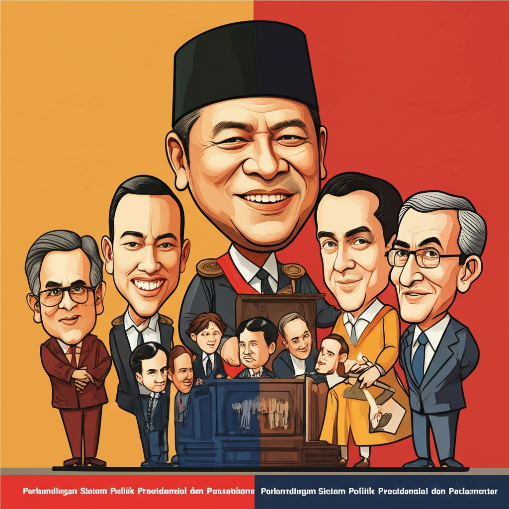 Sistem politik presidensial dan parlementer mewakili dua pendekatan utama dalam desain demokrasi modern. Sistem presidensial, dengan pemisahan kekuasaan yang tegas, menawarkan stabilitas dan mandat langsung, namun berisiko kebuntuan dan potensi konsentrasi kekuasaan. Sebaliknya, sistem parlementer, dengan fusi kekuasaan dan akuntabilitas yang tinggi, menawarkan fleksibilitas dan efisiensi legislatif, namun berpotensi instabilitas dan dominasi kabinet.