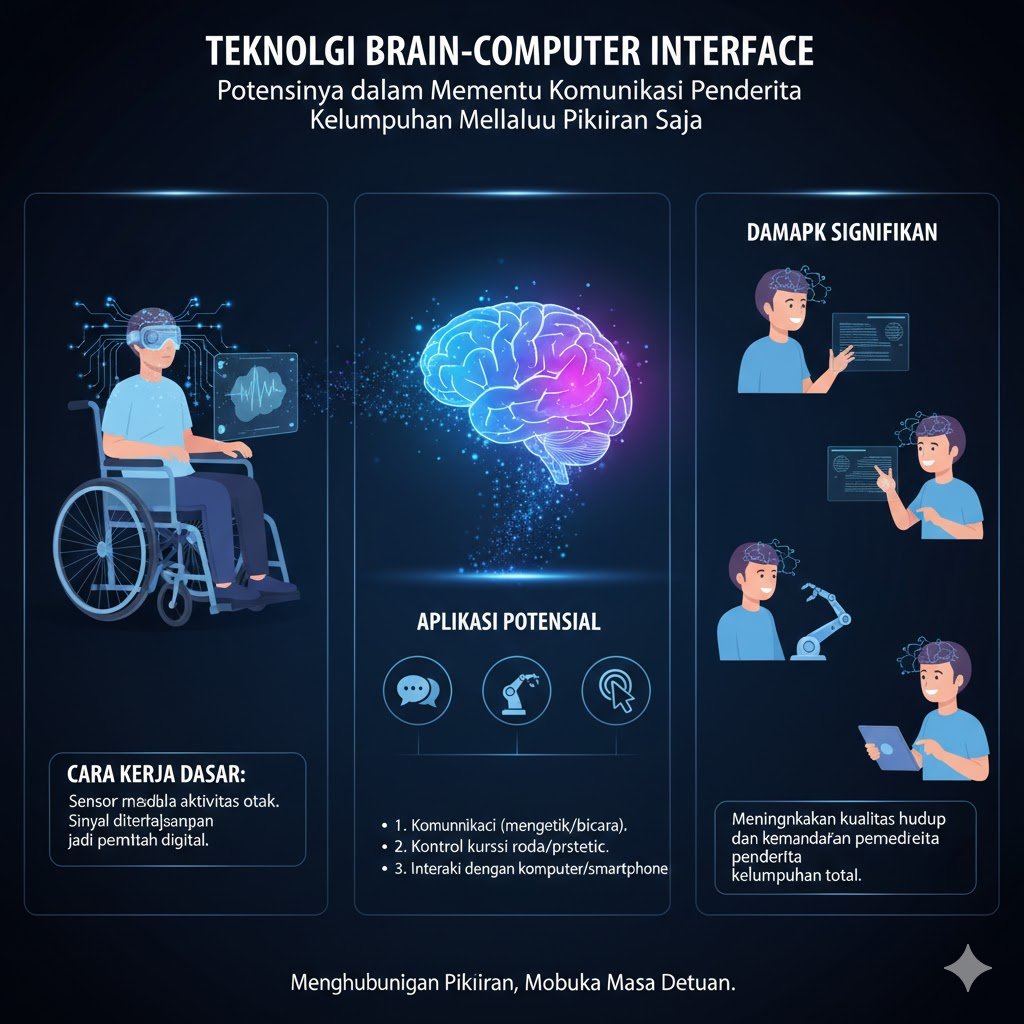 Dunia medis dan teknologi kini berada di ambang revolusi besar berkat pengembangan Brain-Computer Interface (BCI). Teknologi ini bukan lagi sekadar elemen dalam film fiksi ilmiah, melainkan solusi nyata yang sedang dikembangkan untuk mengembalikan martabat dan kemandirian bagi mereka yang kehilangan kemampuan fisik. Penderita kelumpuhan total, seperti penderita Amyotrophic Lateral Sclerosis (ALS), cedera tulang belakang, atau stroke berat, seringkali terjebak dalam tubuh mereka sendiri meskipun fungsi kognitifnya tetap utuh. Di sinilah BCI hadir sebagai jembatan yang menghubungkan aktivitas listrik di otak langsung dengan perangkat eksternal tanpa memerlukan gerakan otot sedikit pun.